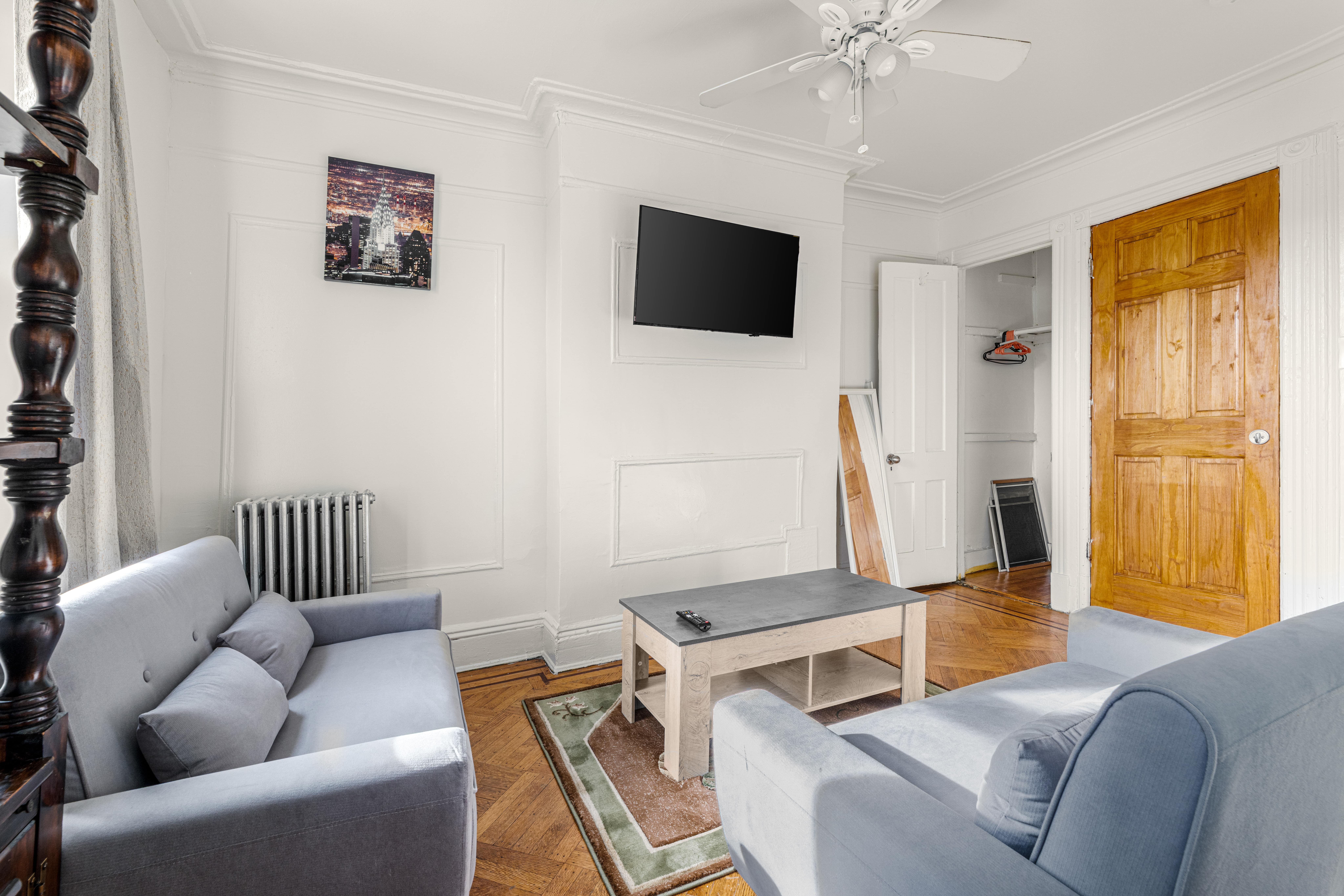 This spacious bedroom offers comfort and functionality with a full-size bed and a dedicated living room, making it suitable for both short and extended stays. Located near Crown Heights and Downtown Brooklyn, you’ll be surrounded by dining, shopping, and cultural attractions.