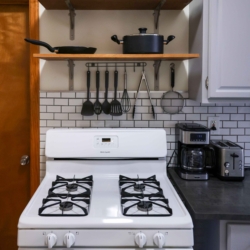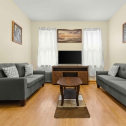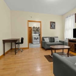 The unit includes a full eat-in kitchen with dining table basic cooking tools, a stove, oven, toaster, coffee maker, microwave, and refrigerator. Pots and pans, dishes, knives, and utensils are all provided, so you’re ready to cook from day one. The living room offers a closet, soft comfortable couches, a desk, and a TV – perfect for unwinding and enjoying some entertainment at the end of the day.